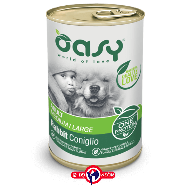 🥩 שימור אואסי לכלב בוגר מגזע בינוני/גדול – Oasy Adult Medium/Large Rabbit (400 גרם) 🐕