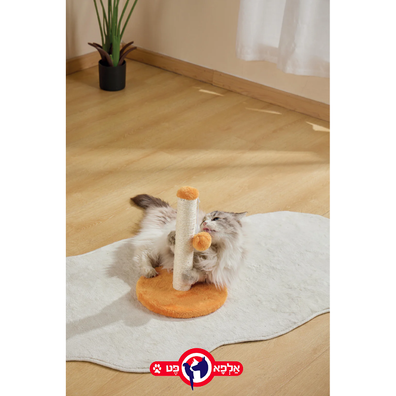 חומרים: עמוד עטוף בחבל סיסאל (Sisal) טבעי לעמידות מקסימלית, בסיס וגימורים מצופים קטיפה (Plush) רכה ונעימה.