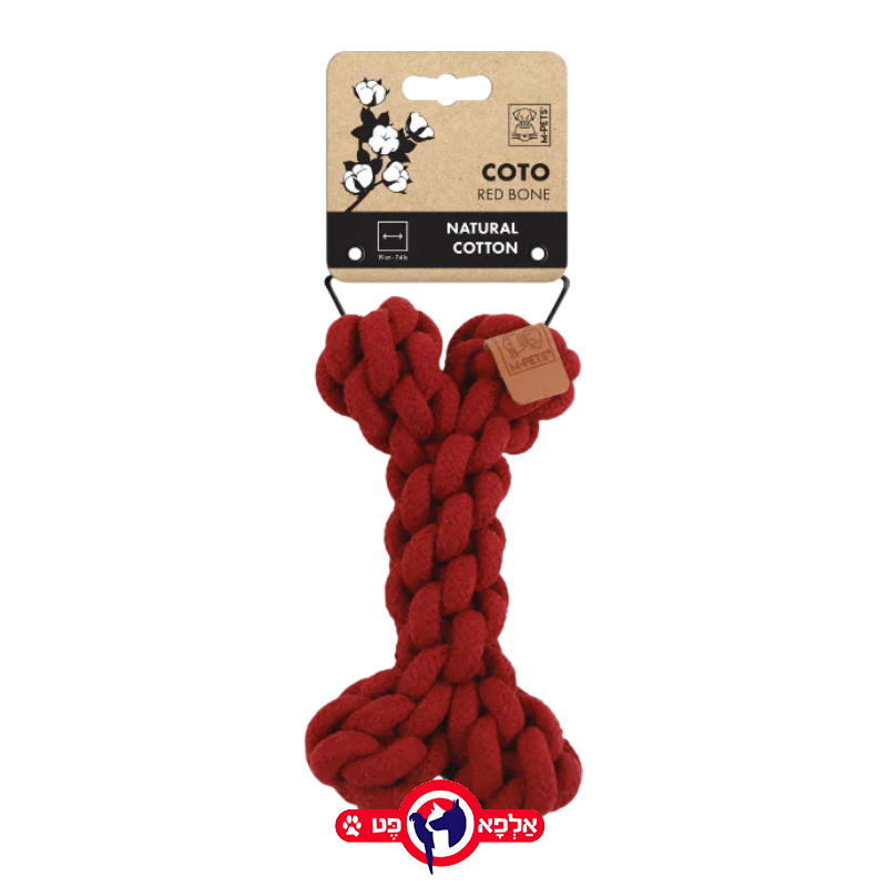 ה-COTO Red Bone מבית M-PETS הוא צעצוע לעיסה קלאסי המעוצב בצורת עצם ועשוי מחבל כותנה טבעי ואיכותי בקליעה דחוסה. הצעצוע נועד לספק לכלב שעות של הנאה תוך שמירה על בריאות הפה; המבנה השזור של החבל פועל כמעין חוט דנטלי טבעי המנקה את השיניים ומעסה את החניכיים בזמן הלעיסה.