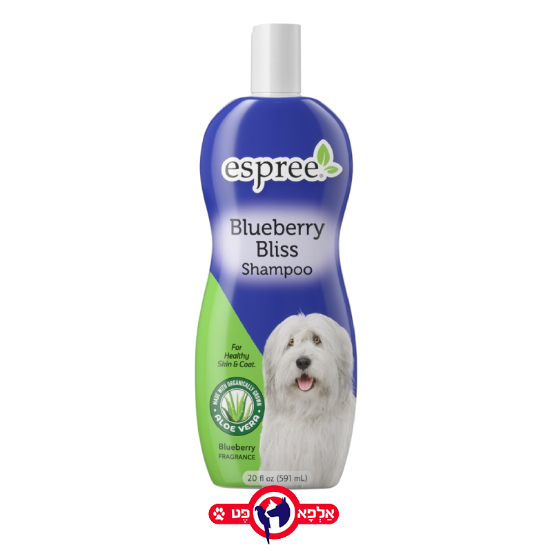שמפו Espree Blueberry Bliss הוא שמפו טיפוח מזין המיועד להעניק לפרווה ברק בריא וחיוני. השמפו מנקה את הפרווה ביעילות ומספק הזנה לעור ולמעטפת הפרווה (Skin & Coat), תוך שהוא מותיר ניחוח מתוק ומרענן של אוכמניות. הוא מתאים לשימוש קבוע כדי לשמור על פרווה מטופחת ומבריקה.