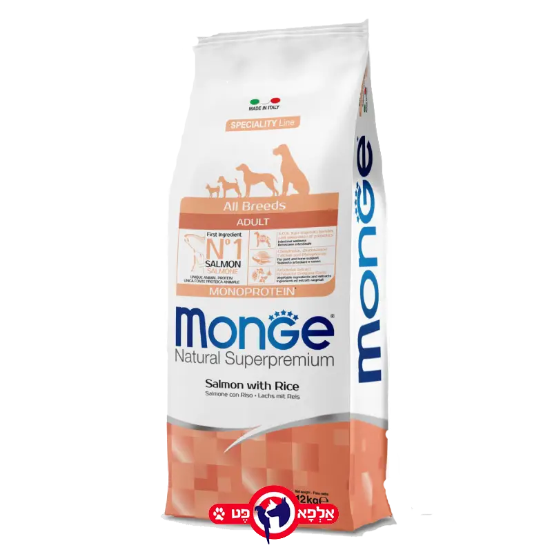 Monge Salmon & Rice פותח במעבדות החברה באיטליה כדי לספק מענה תזונתי הוליסטי. הוא עשיר בחומצות שומן אומגה 3 ו-6 ממקור טבעי, התורמות למראה פרווה מבריק במיוחד ולמניעת גירויים בעור. השימוש בפרה-ביוטיקה מסוג XOS תומך במערכת העיכול ומבטיח ספיגה מקסימלית של כלל הרכיבים התזונתיים, מה שהופך את המזון לבחירה מצוינת לכלבים עם קיבה רגישה.
