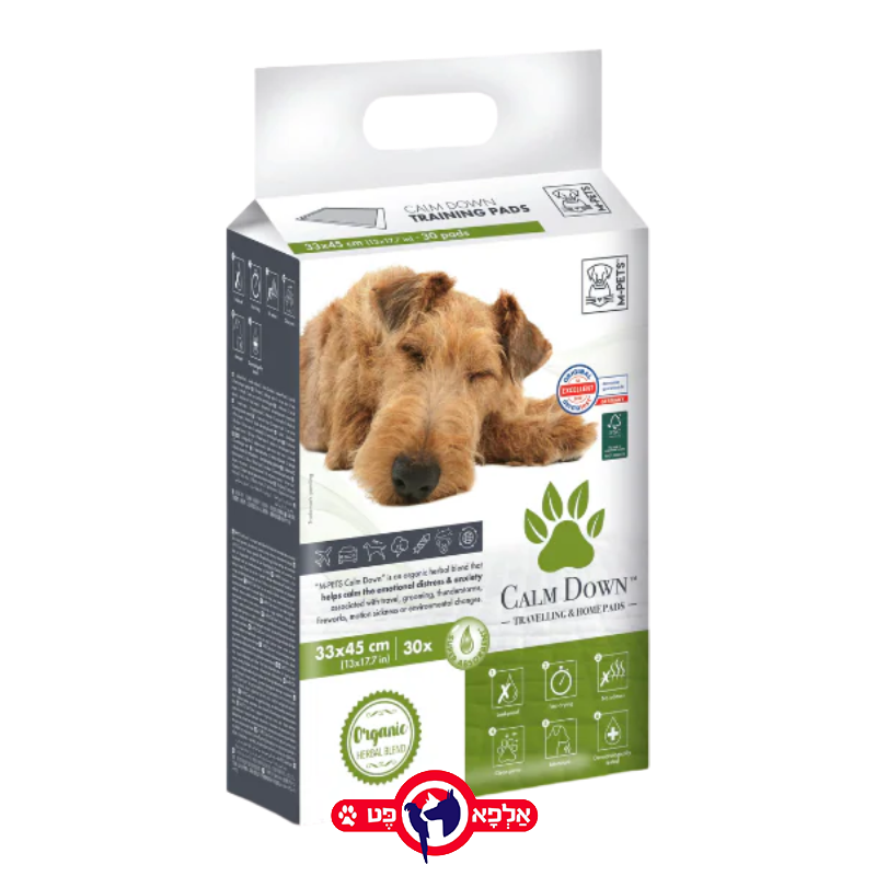 עזרו לחיית המחמד שלכם להתמודד עם רגעי מתח וחרדה בעזרת הפדים המיוחדים מסדרת CALM DOWN™ של M-PETS. פדים אלו אינם רק משטחי ספיגה, אלא מוצר טיפולי המבוסס על תערובת צמחי מרפא אורגנית (Organic Herbal Blend), שנועדה להרגיע מצוקה רגשית וחרדה אצל כלבים במצבים משתנים בבית ובדרכים.