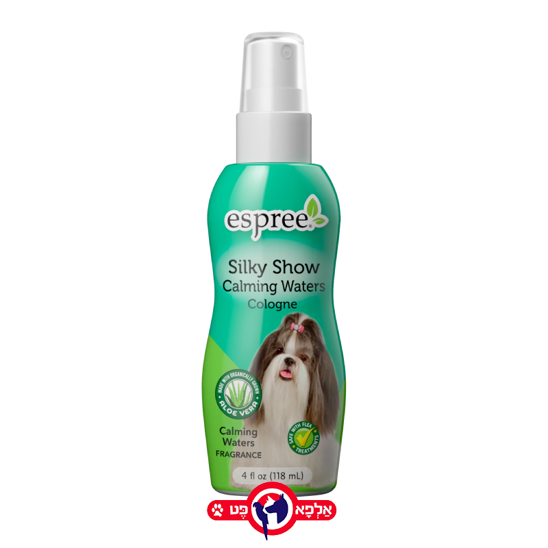 בושם Espree Silky Show Calming Waters Cologne הוא ספריי גמר משלים שנועד להעניק לפרוות הכלב ניחוח נעים ורענן שנשאר לאורך זמן, בין רחצה לרחצה. הבושם הוא חלק מסדרת הטיפוח "Silky Show", ומטרתו להותיר את הפרווה עם ניחוח מרגיע ("מי משי מרגיעים"), מבלי להכביד עליה או לייבש אותה. זהו מוצר אידיאלי לשימוש יומיומי או לאחר הברשה.