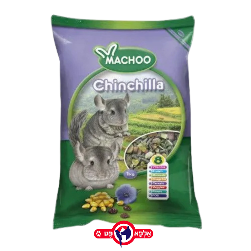 תזונה מאוזנת ושלמה לחיים בריאים, פעילים ומאושרים! מזון מאצ'ו (Machoo) לצ'ינצ'ילה הוא תערובת פרמיום עשירה ומגוונת, שפותחה במיוחד כדי לענות על הצרכים התזונתיים הייחודיים והעדינים של הצ'ינצ'ילה. הפורמולה משלבת רכיבים טבעיים שנבחרו בקפידה כדי לספק אנרגיה, לתמוך במערכת החיסון ולשמור על מראה פרווה מבריק ובריא.