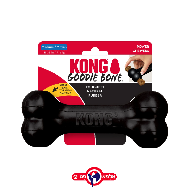 ה-KONG Extreme Goodie Bone עוצב במיוחד עבור כלבים בעלי לסתות חזקות ויצר לעיסה מפותח. הוא עשוי מנוסחת הגומי השחור והקשיח ביותר של KONG, שנועדה לעמוד בנשיכות עוצמתיות ולספק שעות של תעסוקה והנאה.